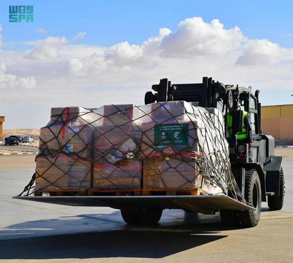 وصلت إلى مطار العريش الدولي بجمهورية مصر العربية اليوم، الطائرة الإغاثية السعودية السابعة، تحمل على متنها مساعدات إغاثية متنوعة شملت مواد غذائية وإيوائية بوزن إجمالي يبلغ 35 طناً، تمهيداً لنقلها إلى المتضررين داخل قطاع غزة، وذلك ضمن الحملة الشعبية لإغاثة الشعب الفلسطيني الشقيق في قطاع غزة، التي وجه بها خادم الحرمين الشريفين الملك سلمان بن عبدالعزيز آل سعود، وولي العهد رئيس مجلس الوزراء الأمير محمد بن سلمان بن عبدالعزيز.