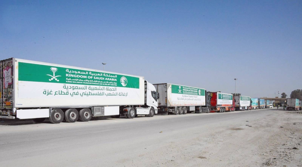 وصول الطائرة الـ20 وعبور مجموعة من القوافل الإغاثية السعودية إلى قطاع غزة