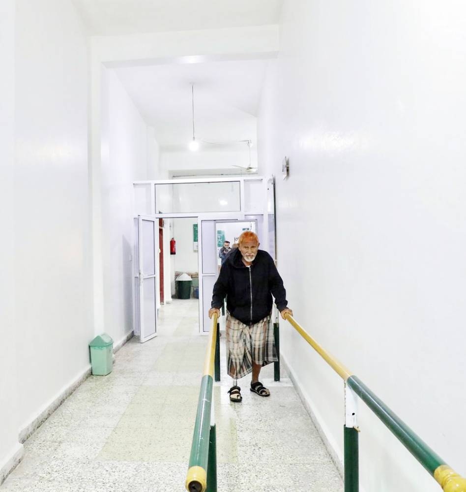 مواطن يمني من تعز يجري علاجاً طبيعياً بعد تركيب طرف صناعي. (واس)