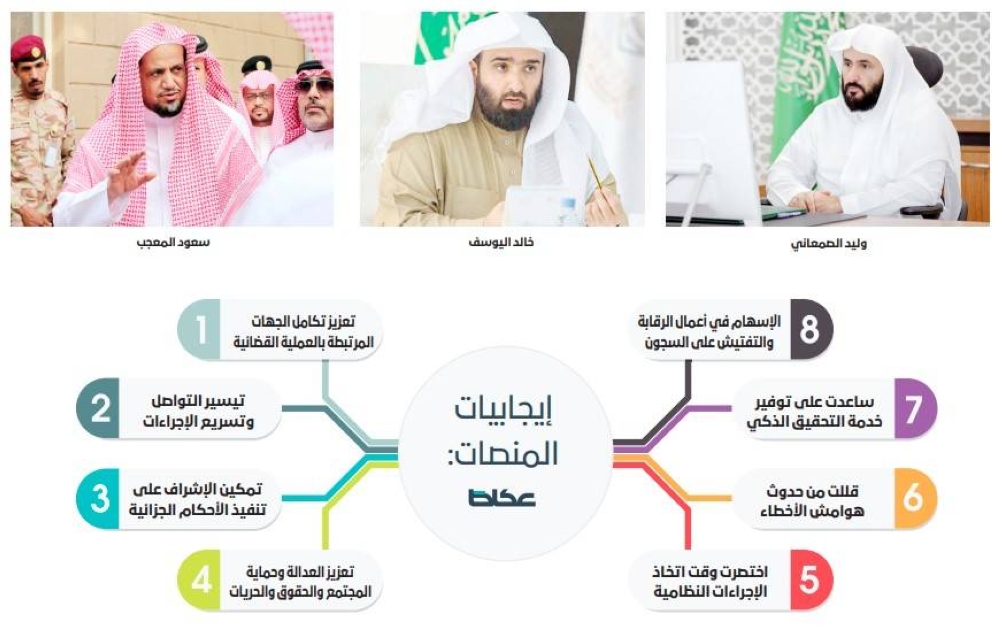 أطلقت النيابة العامة، العديد من أعمالها ومشاريعها التطويرية والتنظيمية خلال العام الماضي، ودشّن النائب العام الشيخ سعود عبد الله المعجب، في وقت سابق منصة (عدالة الإلكترونية)؛ التي ضمت أنظمة معززة للعمل القضائي، شملت القضايا والرقابة والتفتيش على السجون ودور التوقيف، والادعاء العام واستئناف الأحكام، والتعاون الدولي، والتفتيش النيابي. وهدفت المنصة إلى تعزيز التكامل بين الجهات المرتبطة بالعملية القضائية، وتيسير التواصل فيما بينها لتسريع الإجراءات، وحوكمة الإجراءات الجزائية في التحقيق والادعاء واستئناف الأحكام، بالإضافة إلى تمكين الإشراف على تنفيذ الأحكام الجزائية ومتابعة محكومية السجناء.