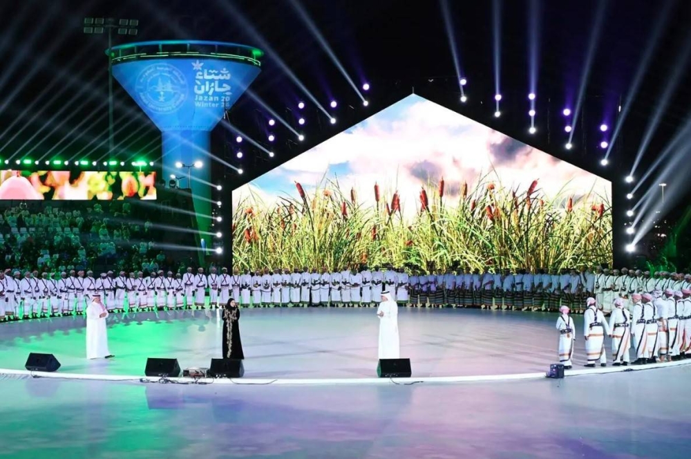 وشاهد أمير جازان والحضور لوحة فنية غنائية تحكي قصة التطور والنمو في منطقة جازان وثقافة وعادات وتقاليد المنطقة وعادات الكرم وحسن الضيافة تحت عنوان «في جازان تتحقق الأمنيات»، وعروض الفرق الشعبية التي تمثل مختلف محافظات المنطقة.