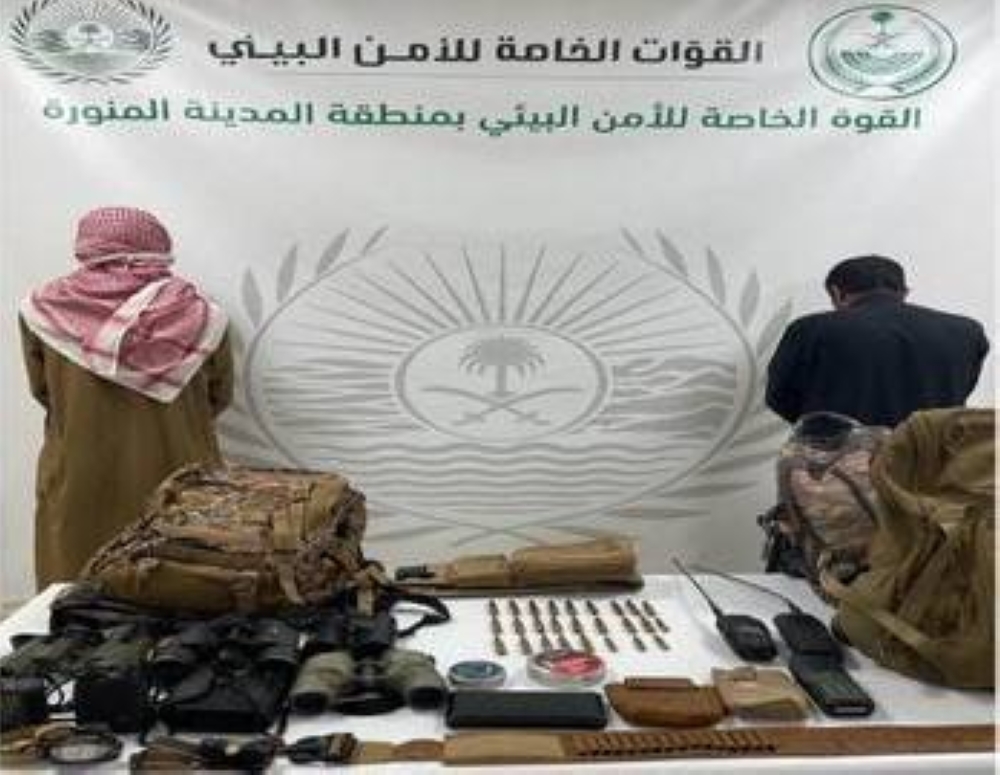 صرح المتحدث باسم القوات الخاصة للأمن البيئي بأن الدوريات الميدانية للقوات وهي تؤدي مهماتها في تنفيذ نظام البيئة بمنطقة المدينة المنورة، تمكنت من القبض على المواطنين: إبراهيم سفر الحربي وطارق علي السهلي، بحوزتهما 4 كائنات مصيدة من نوع وبر و26 ذخيرة شوزن حية و500 طلقة هوائية و3 أجهزة اتصال لاسلكي و3 حقائب حمل كتف و4 مناظير نهارية و3 مناظير تحديد المسافات وكشافين، وارتكابهما مخالفة الصيد، وجرى إيقافهما واتخاذ الإجراءات النظامية بحقهما، وإحالتهما إلى جهة الاختصاص.