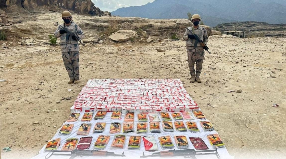 أحبطت الدوريات البرية لحرس الحدود في قطاع الربوعة بمنطقة عسير تهريب (90,000) قرص خاضع لتنظيم التداول الطبي، و(33) كيلوغراماً من مادة الحشيش المخدر، وضبطت سلاحين ناريين، وجرى استكمال الإجراءات النظامية الأولية، وتسليم المضبوطات لجهة الاختصاص.