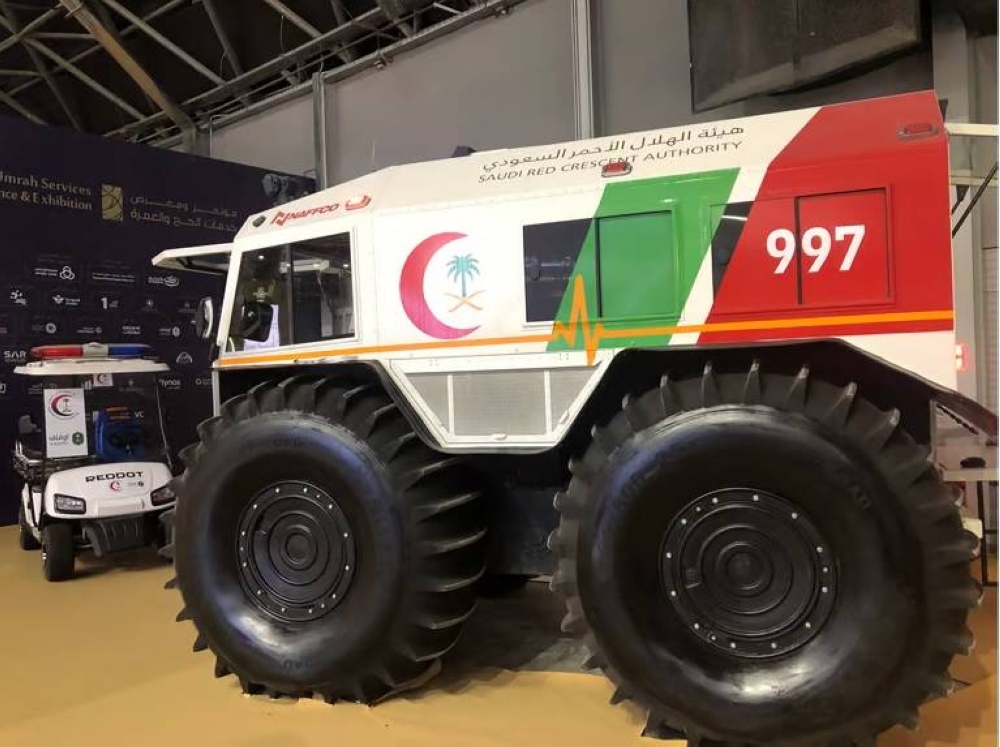 و خطفت مركبة «طميه» إحدى مركبات هيئة الهلال الأحمر السعودي التي تم تدشينها في موسم حج العام الماضي الأنظار لزوار مؤتمر و معرض خدمات الحج والعمرة 2024م والمقام في سوبر دوم جدة من تاريخ 8-11 /1 /2024م.حيث تنفرد الهيئة باحتضانها لأول مركبة إسعافيه برمائية من نوعها في الشرق الأوسط والتي تتسم بالاستجابة النوعية في عمليات إخلاء الحالات الطارئة التي يصعب الوصول إليها في المناطق الوعرة كالجبال والسهول وحتى المناطق المائية والوحلة. إذ تتمتع بقدرة الوصول إلى أصعب الأماكن، فضلاً عن قدرتها في تنفيذ مهمات الإنقاذ، والإسعاف٠