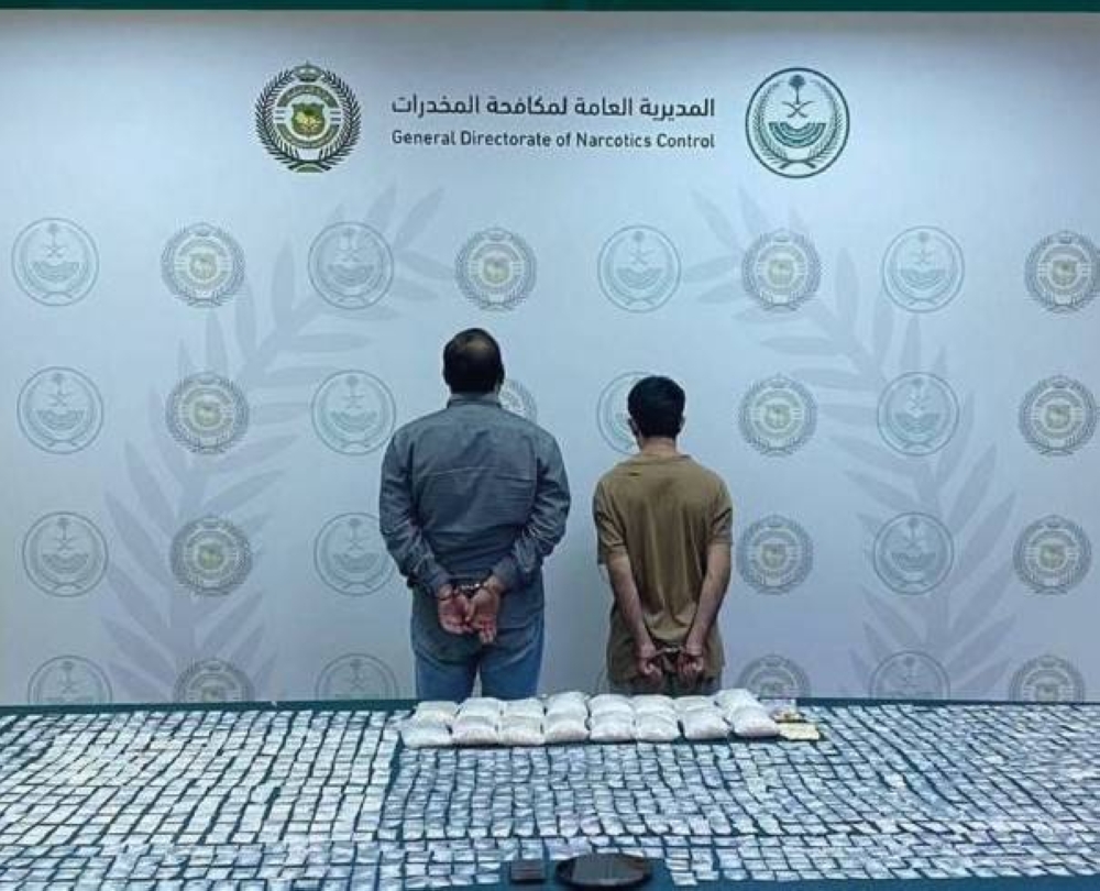قبضت المديرية العامة لمكافحة المخدرات على مقيمين من الجنسية الباكستانية بمنطقة الرياض لترويجهما 9 كيلوغرامات من مادة الميثامفيتامين المخدر (الشبو)، ومادة الهيروين المخدر، وجرى إيقافهما واتخاذ الإجراءات النظامية بحقهما، وإحالتهما إلى النيابة العامة.