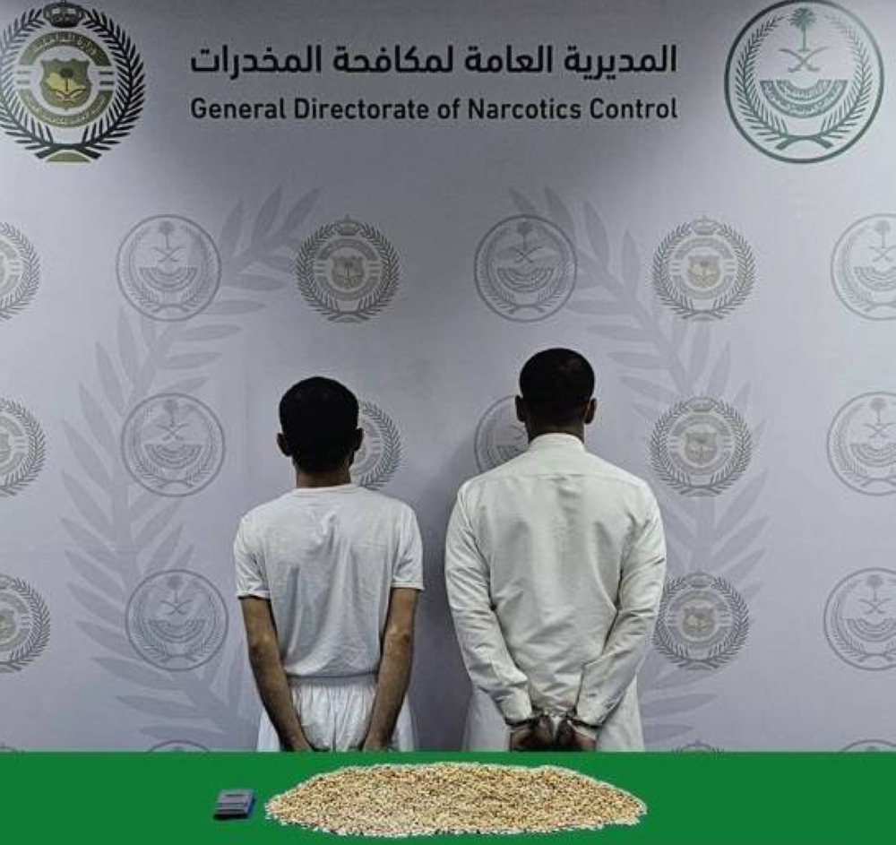 قبضت المديرية العامة لمكافحة المخدرات على مخالف لنظام أمن الحدود ومقيم من الجنسية اليمنية بمحافظة جدة لترويجهما 21,000 قرص من مادة الإمفيتامين المخدر، وجرى إيقافهما واتخاذ الإجراءات النظامية بحقهما، وإحالتهما إلى النيابة العامة.