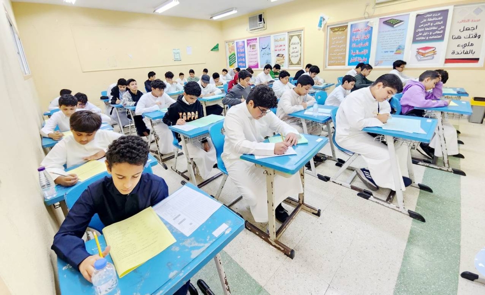 طلاب يؤدون اختبارات الفصل الثاني بمدارس جدة. (مديني عسيري)