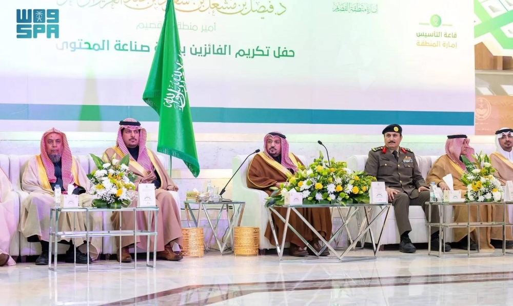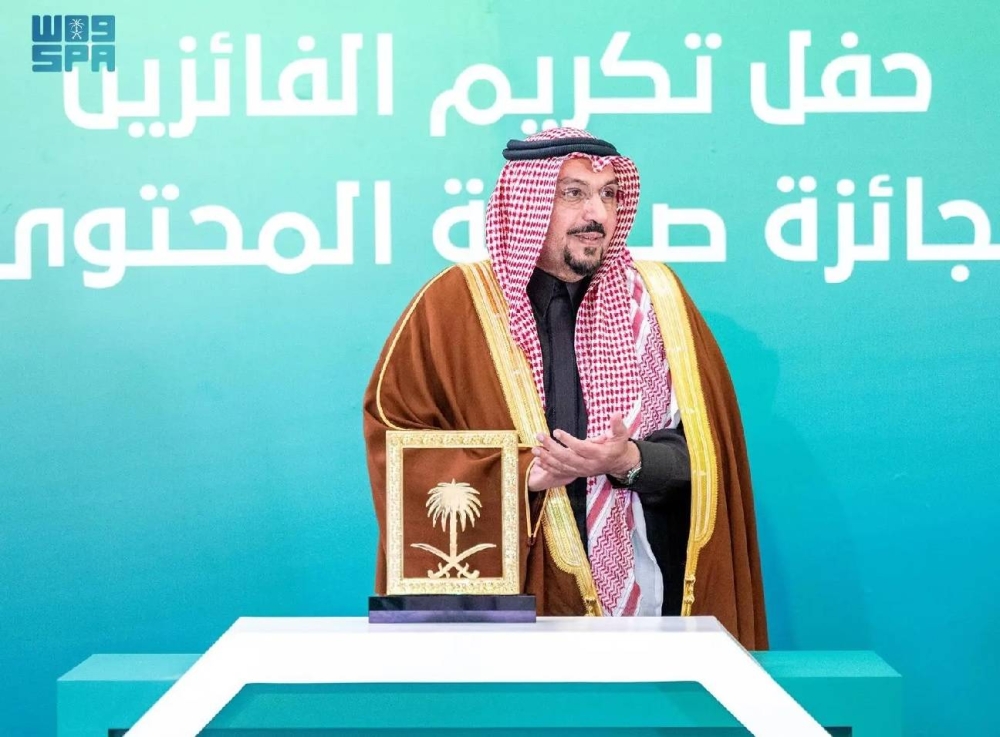 وكان أمير منطقة القصيم قد شهد الحفل الخطابي المعد بهذه المناسبة تخللها كلمة الفائزين ألقاها عبدالله الأسمري، أعرب فيها عن شكره وتقديره لأمير القصيم وحرصه على تقدير أبناء الوطن المخلصين من صناع المحتوى في جميع المسارات الإعلامية، مؤكداً بأن هذه الجائزة تتويج لجهود المهتمين في صناعة المحتوى الإعلامي.