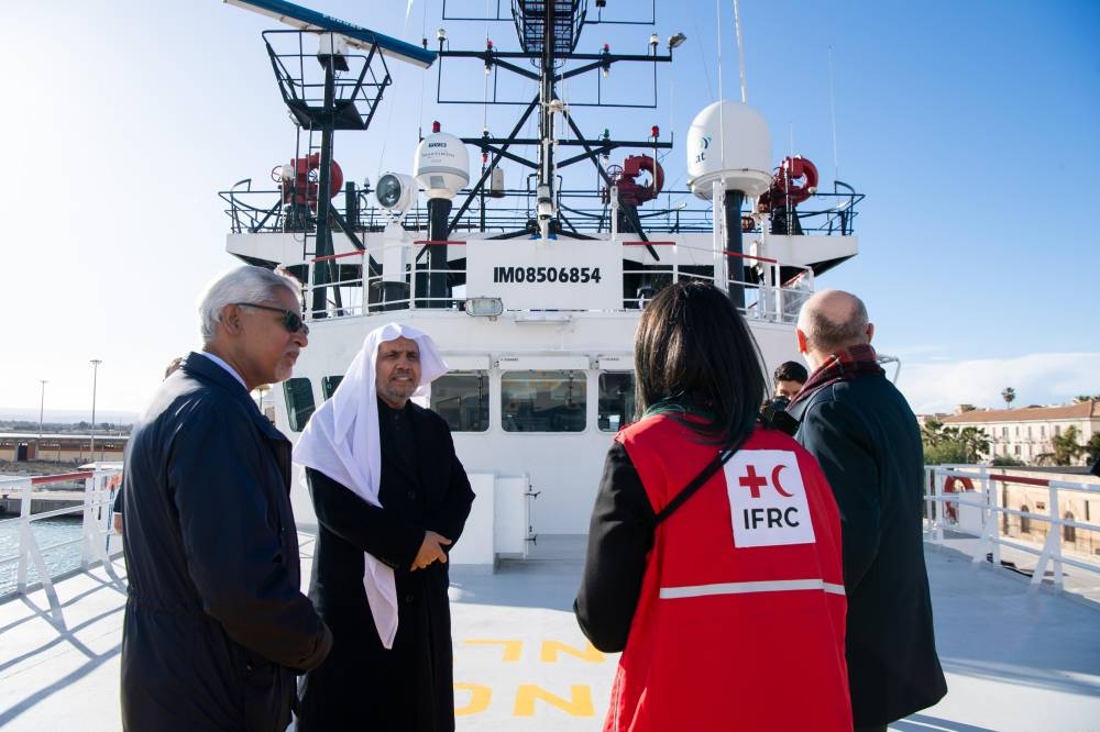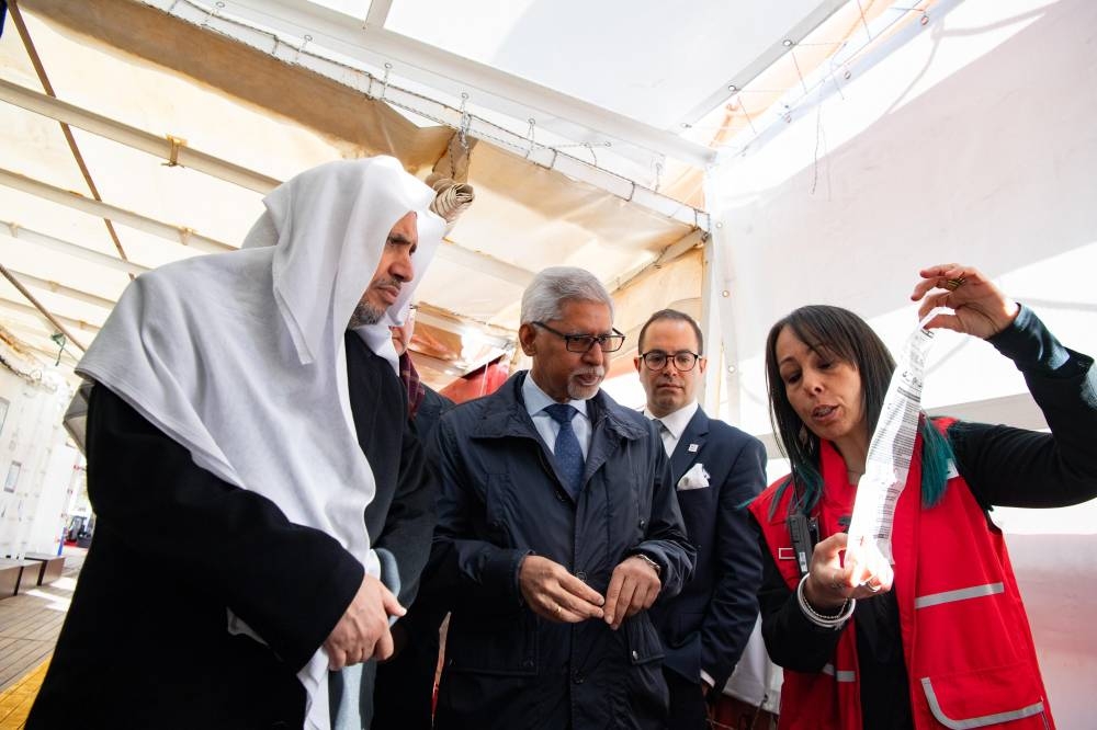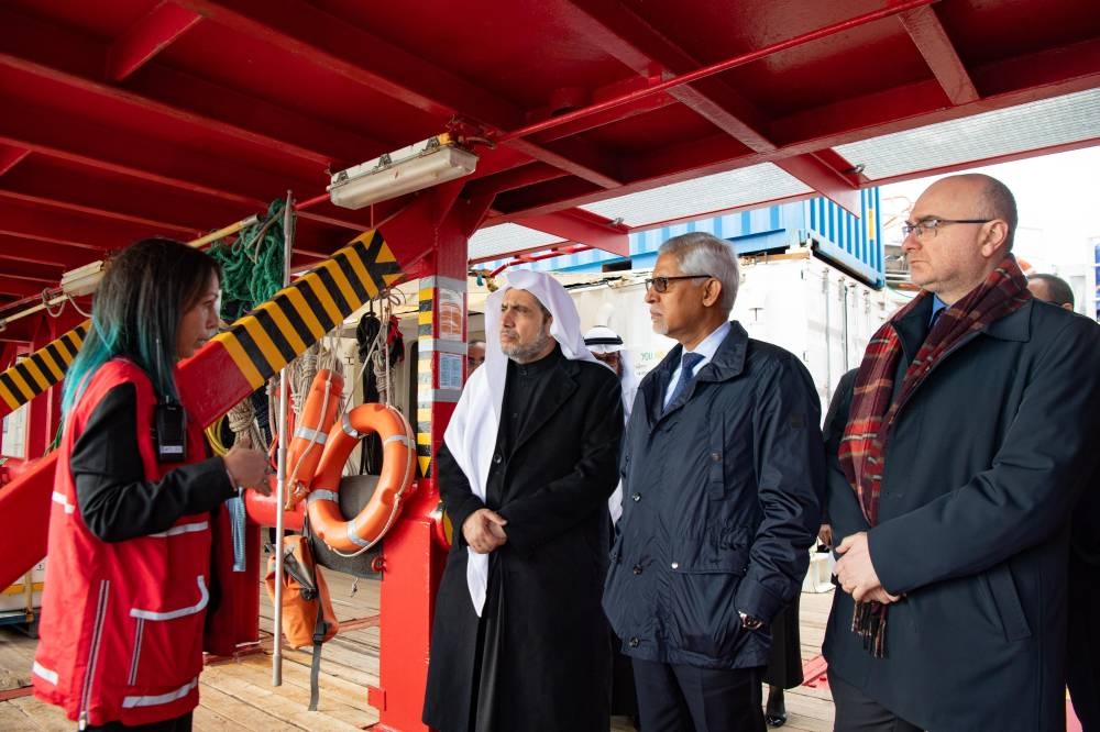 واطلع العيسى على سيْر العمل في السفينة، وأشاد بالجهودِ النبيلةِ المُنقِذة للأرواح التي يبذلها طاقم السفينة، بالتعاون مع جمعيات الصليب الأحمر والهلال الأحمر؛ شريك رابطة العالم الإسلامي الإستراتيجي، وتوفير الغذاء والدواء والرعاية الصحية لمن تقطَّعت بهم السبل في عُرْض البحر.