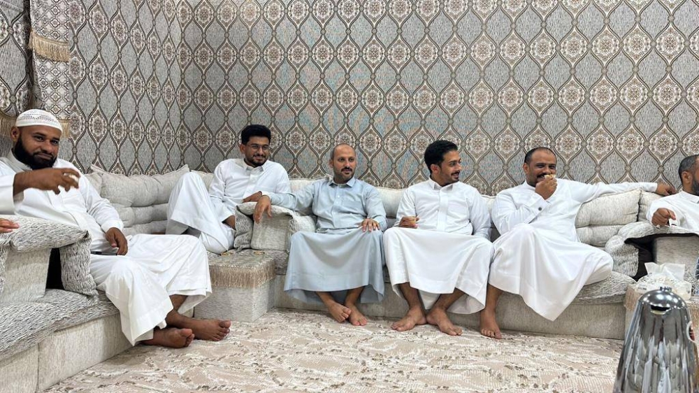 من جانبه يقول علي قشيشي: «إن الأهالي في القرى يقومون بعمل ديوانية في مكان بارز في القرية من بداية رمضان وتجهيزها بكل ما يلزم لتكون مكاناً للإفطار الجماعي لأهل الحي، ليحضر كل شخص ما تيسر معه من مائدة الإفطار في مكان واحد الكبار والصغار للإفطار الجماعي، وبعد صلاة التراويح يجتمع فيها الكل لتبادل الحديث والذكريات عن الماضي الجميل وتناول الشاي والقهوة، وتقام فيها بعض الفعاليات الرمضانية». فيما تقول فازعة الصامطي، وهي ربة منزل: «إن العادة جرت عند بعض النسوة في الحرث وبعض المحافظات المجاورة على تزيين البيوت في بداية شهر رمضان، وتخصيص مكان لاجتماع الأسرة وقت الإفطار، كما يقمن بتجهيز أدوات الطبخ مثل الأواني الفخارية والتنور والملحة وإعداد جميع أنواع البهارات البلدي والحلبة وطحن الحبوب من الذرة والدخن البلدي وتجهيز أدوات القهوة، ومن أول يوم في رمضان يقمن بتجهيز الإفطار الذي يحتوي على الأكلات الشعبية القديمة مثل مغشات اللحم والسمك والخضار وعيش الخمير والبر، ويكون للجيران نصيب منها بتبادل الهدايا من أصناف الطعام فيما بينهم قبل الغروب». وأضافت: «وبعد صلاة التراويح تجتمع النسوة في مكان واحد لتبادل حديث السمر في ليالي رمضان وكيف كانت العادات قديماً وحديثاً، وكيف يقضي الأولون ليالي رمضان وسرد القصص للأبناء عن حياتهم القديمة من مشقة الصيام وما هم عليه الآن من النعم التي لا تعد ولا تحصى».