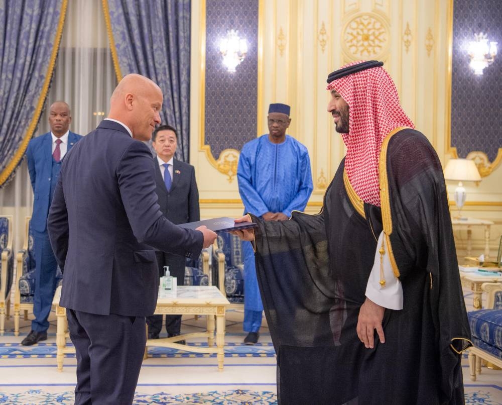 حضر تسليم أوراق اعتماد السفراء وزير الخارجية الأمير فيصل بن فرحان بن عبدالله، ورئيس الديوان الملكي فهد بن محمد العيسى.