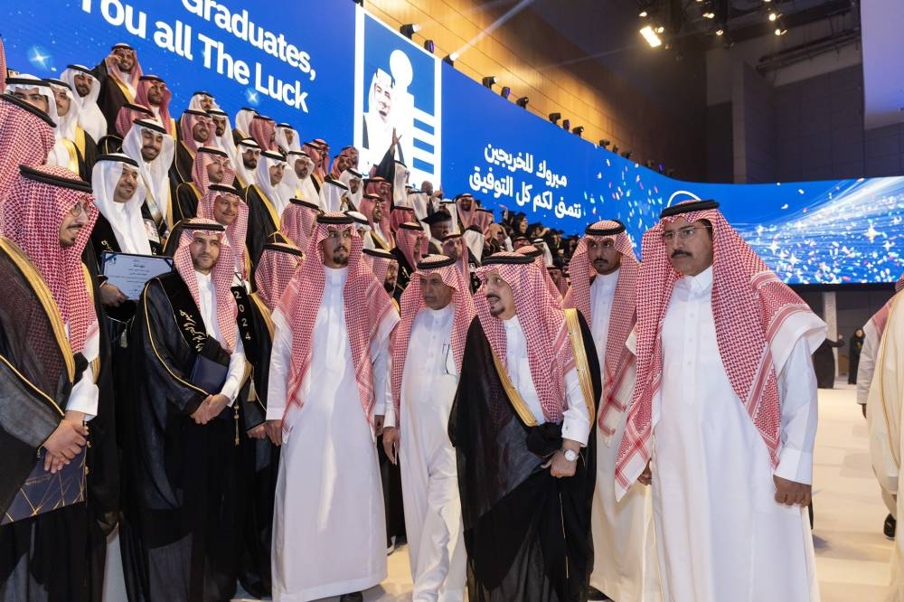 عقب ذلك جرى إعلان أسماء الخريجين والخريجات للعام الدراسي الحالي، ثم أدى الخريجون والخريجات القسم، وتشرف الخريجون والخريجات بالتقاط الصور الجماعية مع الأمير فيصل بن بندر.