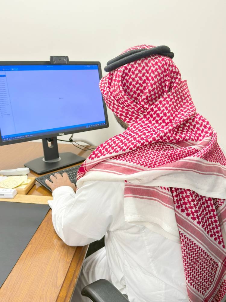 موظف يرتدي الزي الوطني أثناء عمله. (تصوير: مديني عسيري)
