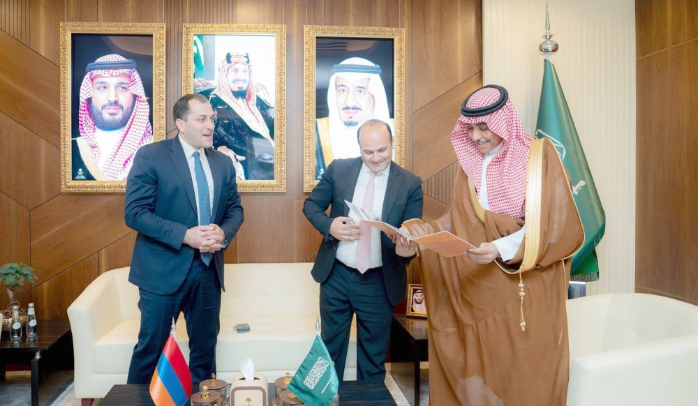 وزير الإعلام خلال استقباله وزير العمل والشؤون الاجتماعية الأرميني. (واس)