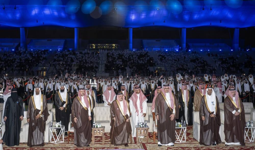 ثم أُلقيت كلمة الخريجين ثمنوا فيها رعاية وتشريف أمير منطقة الرياض حفل تتويج مسيرتهم العلمية، معبرين عن فرحتهم وسعادتهم بنيل وقطاف ثمرة الجهد الذي بذلوه، واستمروا عليه طلباً للعلم والمعرفة وخدمة للوطن والقيادة.