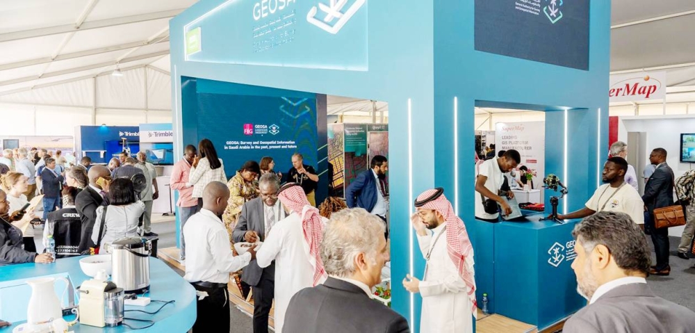 جناح الهيئة المقام ضمن فعاليات المؤتمر يحتوي على معلومات جيومكانية. (واس)
