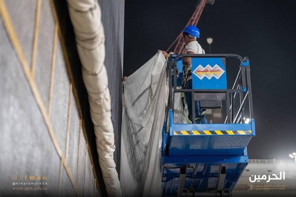تواصل الهيئة العامة للعناية بشؤون الحرمين الشريفين، عمليات الحفاظ على نظافة وسلامة كسوة الكعبة المشرفة ومنع العبث بها.