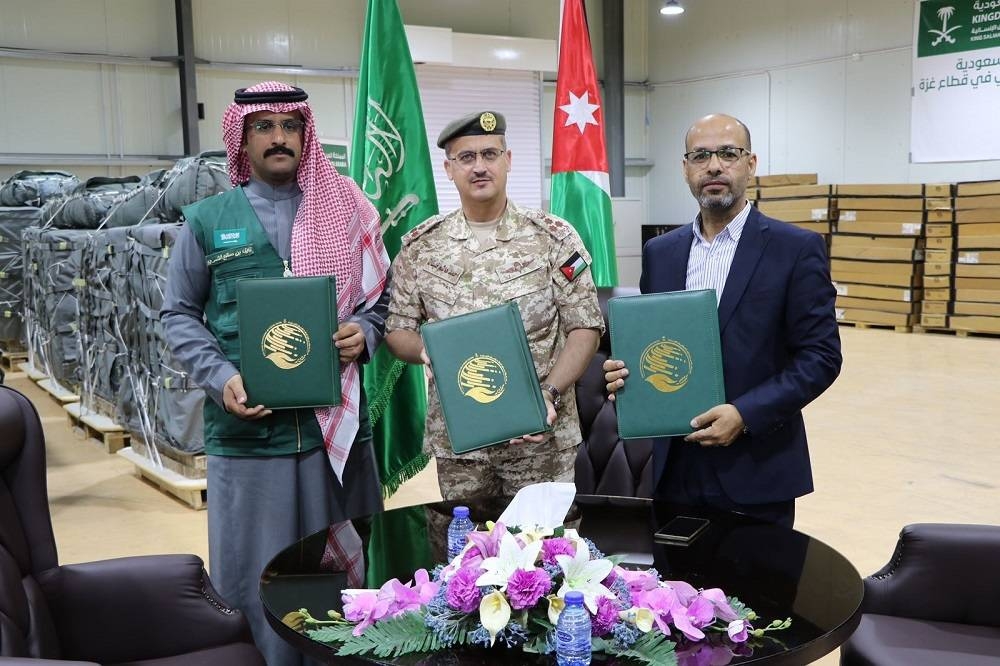 سلمت المملكة العربية السعودية، ممثلة بمركز الملك سلمان للإغاثة والأعمال الإنسانية، تجهيزات وأدوات للمملكة الأردنية الهاشمية، ممثلة بالهيئة الخيرية الأردنية الهاشمية، ليتم تسليمها إلى القوات المسلحة الأردنية الهاشمية (الجيش العربي) والجهات ذات العلاقة، لدعم ومساندة الجهود الإنسانية المبذولة من المملكة الأردنية الهاشمية لإيصال المساعدات إلى قطاع غزة للتخفيف من حدة وتفاقم الأوضاع الإنسانية في القطاع، من خلال تأمين المظلات والشبكات المخصصة لعمليات الإنزال الجوي للمساعدات الإنسانية البالغ وزنها 30 طنا، ضمن الحملة الشعبية السعودية لإغاثة الشعب الفلسطيني في قطاع غزة.