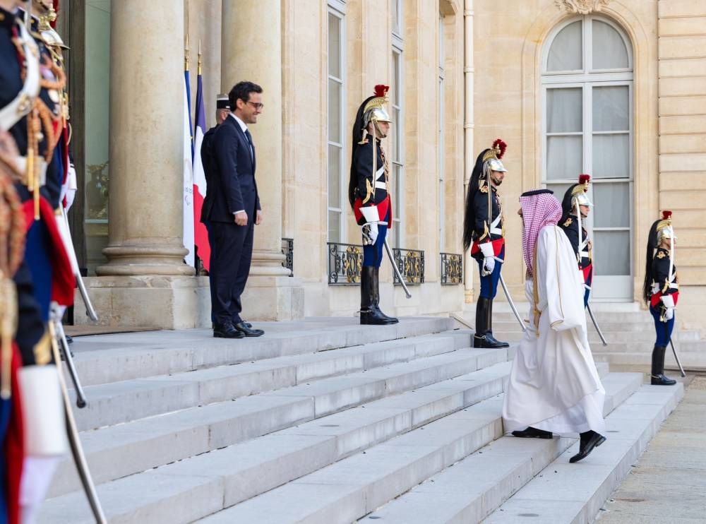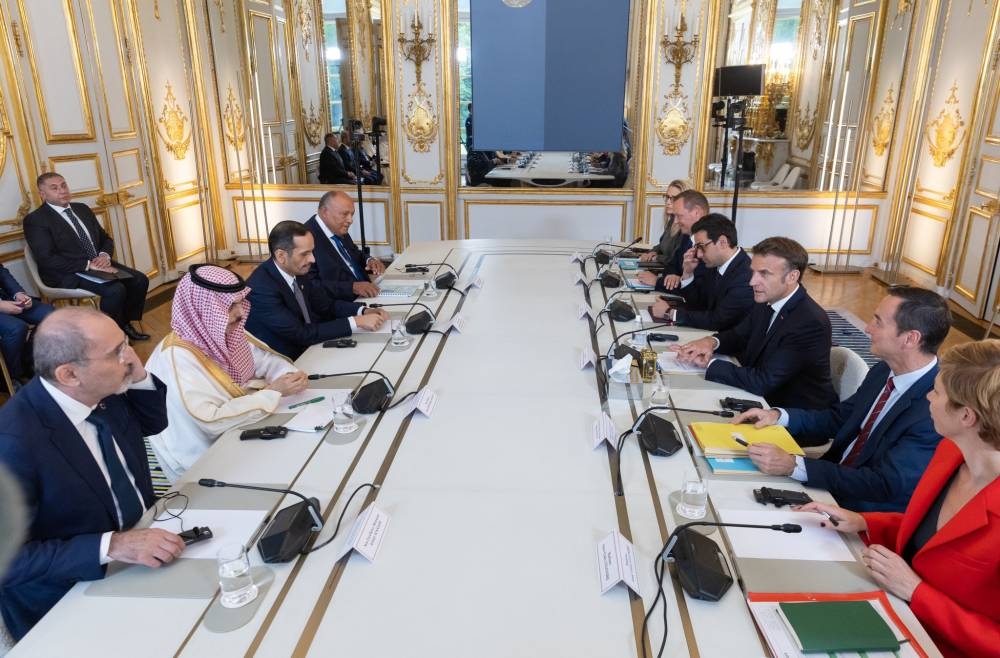 استقبل رئيس الجمهورية الفرنسية الرئيس إيمانويل ماكرون، اليوم، أعضاء اللجنة الوزارية المكلفة من القمة العربية الإسلامية المشتركة غير العادية بالتحرك الدولي لوقف الحرب على غزة، برئاسة وزير خارجية المملكة العربية السعودية الأمير فيصل بن فرحان بن عبدالله، وحضور رئيس مجلس الوزراء وزير خارجية دولة قطر الشيخ محمد بن عبدالرحمن بن جاسم آل ثاني، ونائب رئيس الوزراء وزير الخارجية وشؤون المغتربين في المملكة الأردنية الهاشمية أيمن الصفدي، ومعالي وزير خارجية جمهورية مصر العربية سامح شكري.