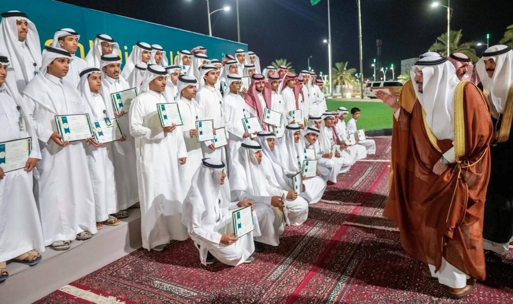 وفي ختام الحفل تسلم أمير منطقة القصيم إهداءً تذكارياً من إدارة تعليم محافظة المذنب.