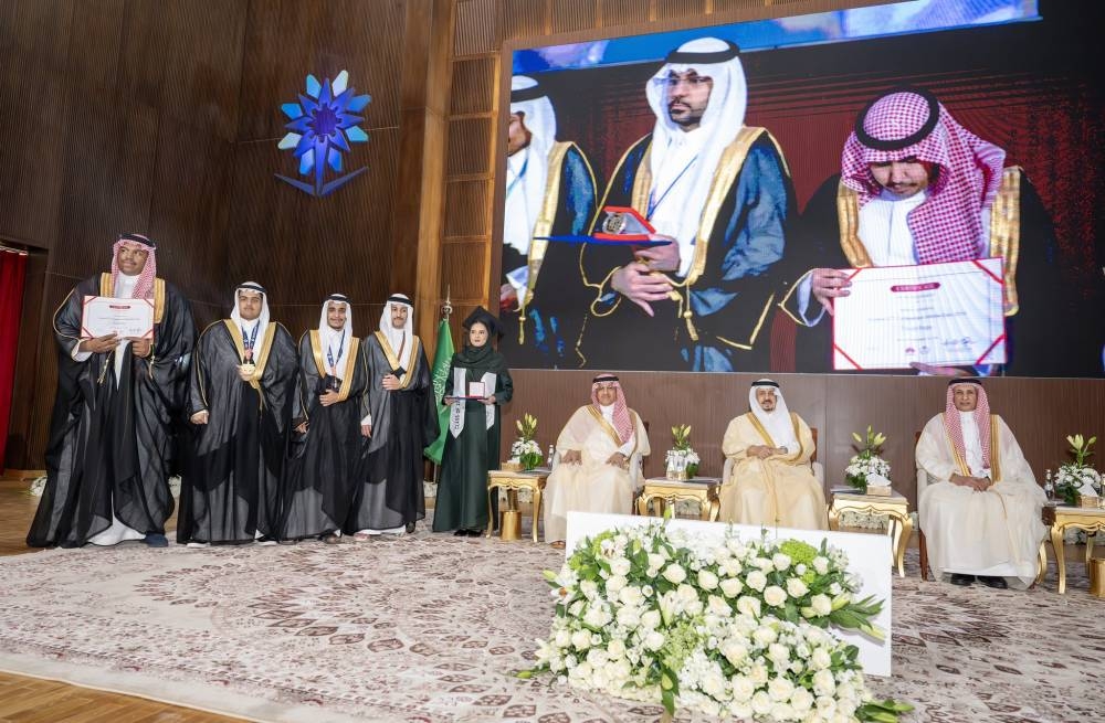 وفي ختام الحفل تشرّف الطلبة الفائزون بالجوائز العالمية بالتقاط الصور التذكارية مع الأمير فيصل بن بندر.