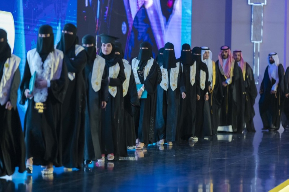 وأشاد وزير العدل بما استشعره من همة لدى الخريجين والخريجات، وهو ما يمثل لهم دافعاً قوياً لبناء مستقبلهم ومسارهم المهني، استعداداً لمرحلة جديدة من مراحل مسيرتهم، والمشاركة في عملية التنمية ضمن رؤية المملكة 2030، وأن هذه الهمة ستدفعهم بحول الله إلى استغلال الفرص التطويرية كافة، لاسيما مع تطور البيانات والذكاء الاصطناعي، والتقنيات الحديثة، التي تمكن من تحسين المهارات، وتقديم خدمات عدلية متطورة ومستمرة.