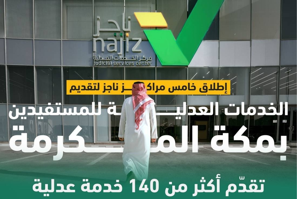 أعلنت وزارة العدل افتتاح مركز ناجز في منطقة مكة المكرمة، كخامس المراكز التي تقدّم أكثر من 140 خدمة عدلية للأفراد وأصحاب الأعمال في مكان واحد وبموثوقية عالية في جميع القطاعات المختلفة (القضاء، والتنفيذ، والتوثيق وخدمات قطاع الأعمال)، كما توفر هذه المراكز على المستفيدين وقتهم وجهدهم وتمكنهم من الحصول على الخدمات في أوقات مرنة أثناء وخارج أوقات العمل الرسمي.