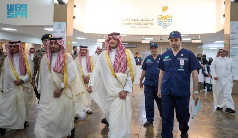 وقف وزير الداخلية رئيس لجنة الحج العليا الأمير عبدالعزيز بن سعود بن نايف بن عبدالعزيز اليوم على سير العمل في مستشفى قوى الأمن بمكة المكرمة، والخدمات الصحية التي تقدمها الإدارة العامة للخدمات الطبية بوزارة الداخلية خلال موسم الحج لهذا العام.