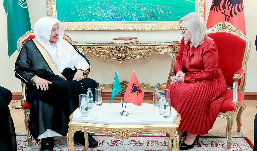 جلسة مباحثات جمعت رئيس مجلس الشورى ورئيسة البرلمان الألباني. (واس)