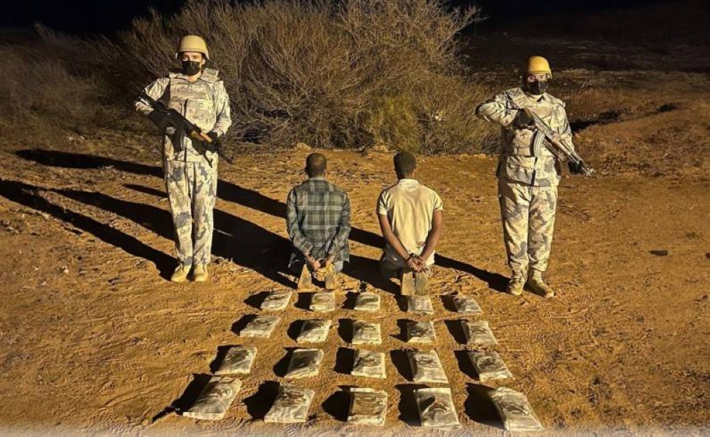 قبضت الدوريات البرية لحرس الحدود في قطاع ظهران الجنوب بمنطقة عسير على مخالفين لنظام أمن الحدود من الجنسية الإثيوبية، لتهريبهما (22) كيلوغراما من مادة الحشيش المخدر، وجرى استكمال الإجراءات النظامية الأولية بحقهما، وتسليمهما والمضبوطات لجهة الاختصاص.