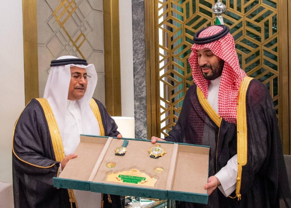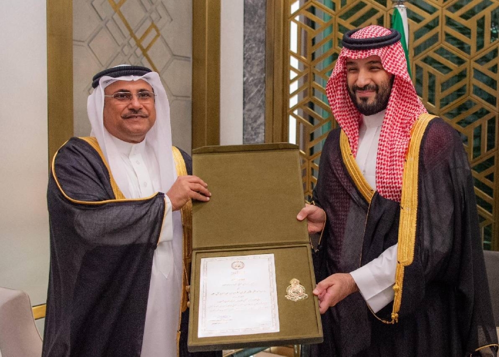 وقدّم رئيس البرلمان العربي وسام القائد لولي العهد تقديراً وعرفاناً من الشعب العربي لمواقفه الرائدة في الدفاع عن القضايا العربية، وتعزيز العمل العربي المشترك.
