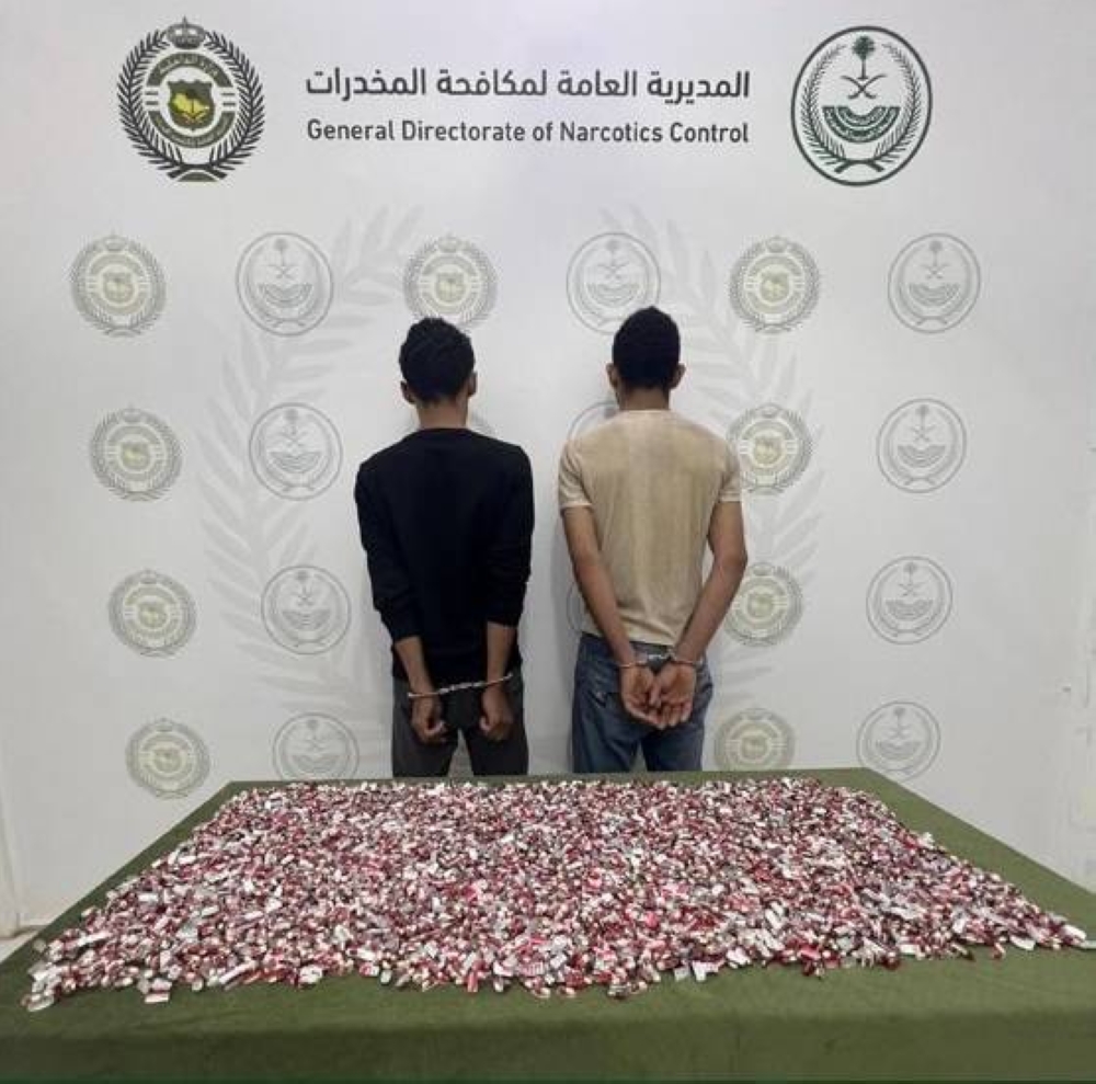 قبضت المديرية العامة لمكافحة المخدرات على مقيم ووافد من الجنسية اليمنية بمنطقة المدينة المنورة لترويجهما 5,837 قرصاً خاضعاً لتنظيم التداول الطبي، وجرى إيقافهما واتخاذ الإجراءات النظامية بحقهما، وإحالتهما إلى النيابة العامة.