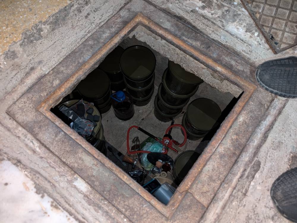 وجرى التثبت من المعلومات، وبتفتيش الموقع تم العثور على الخزان، الذي خصص كمستودع للمواد غير النظامية، إضافة إلى ضبط أحد الباصات التي تستخدم كمستودع تخزين للبضائع غير النظامية أمام محلات تجارية كانت قد قامت بتخزين البضائع داخله، لضمان عدم ضبطها داخل المحلات.