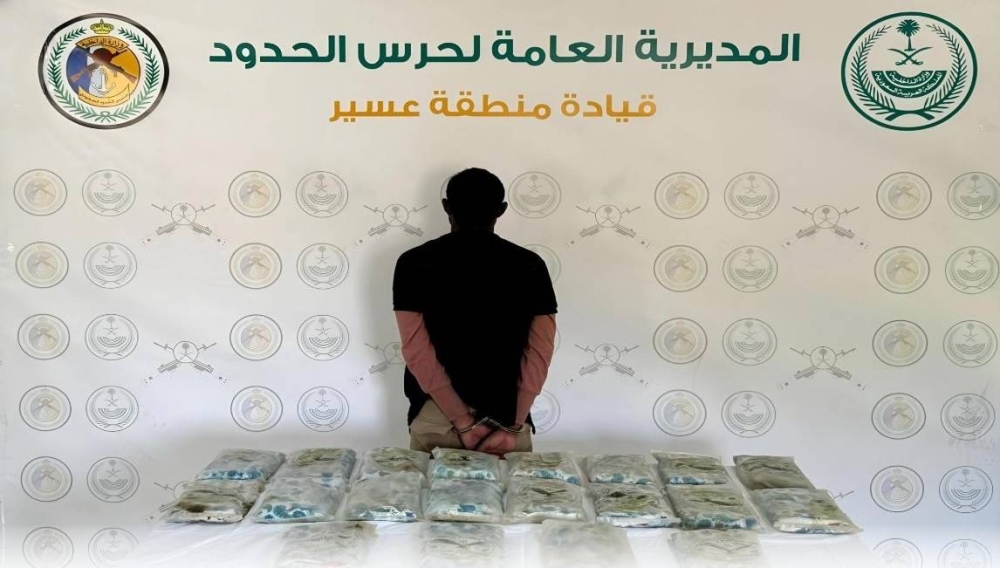قبضت الدوريات البرية لحرس الحدود في قطاع ظهران الجنوب بمنطقة عسير على مخالف لنظام أمن الحدود من الجنسية الإثيوبية، لتهريبه (20) كيلوجراماً من مادة الحشيش المخدر، وجرى استكمال الإجراءات النظامية الأولية بحقه، وتسليمه والمضبوطات لجهة الاختصاص.