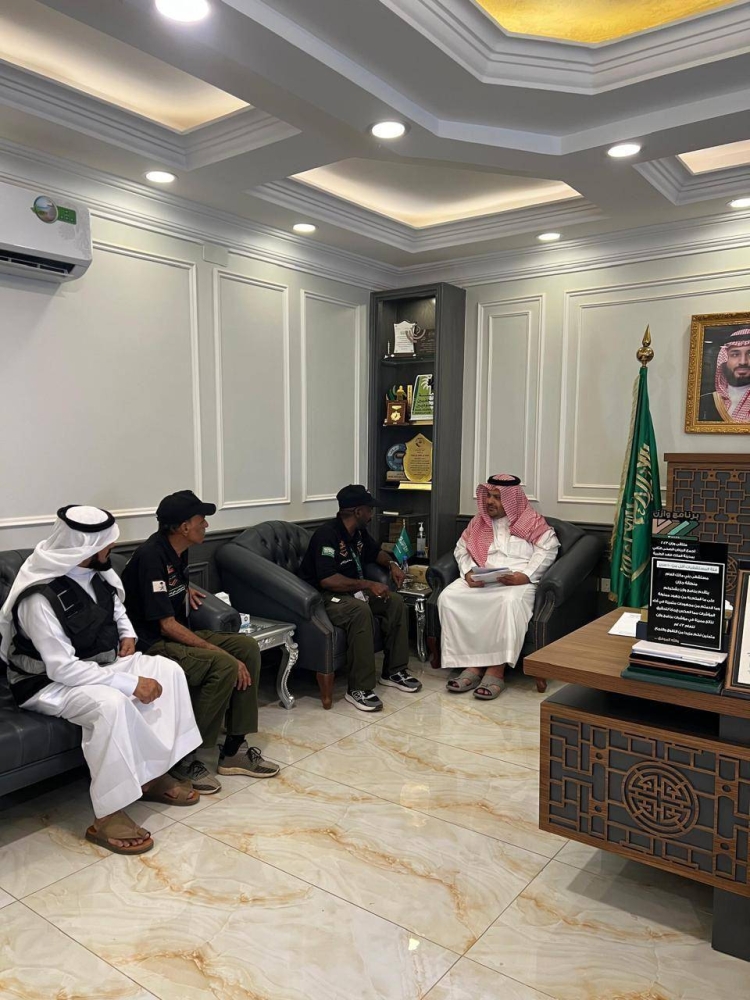 دشن محافظ الداير نايف بن ناصر بن لبدة فرع الجمعية السعودية للبحث والإنقاذ والإغاثة (دعم) بمحافظة الداير بحضور رئيس الجمعية بالمنطقة الكابتن سعد بن ناصر البقمي وعدد من أعضائها بمكتبه بالمحافظة.