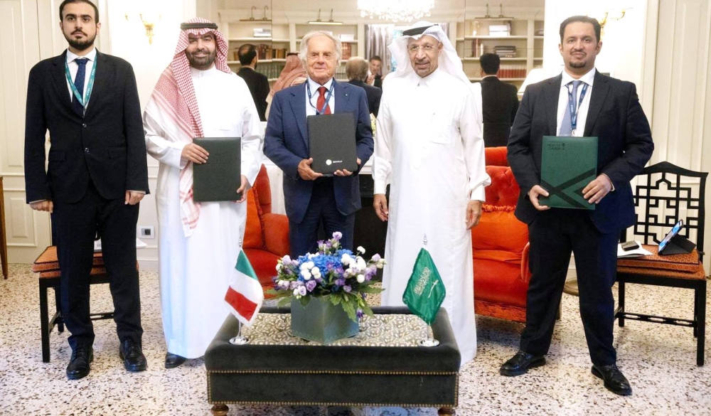 عقب توقيع مذكرة التفاهم بين وزارة الاستثمار والصناعات العسكرية وشركة إليترونيكا الإيطالية. (واس)