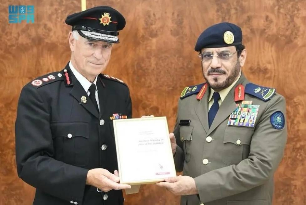 جاء ذلك خلال استقبال مدير عام الدفاع المدني المكلف اللواء الدكتور حمود بن سليمان الفرج للمستشار الإستراتيجي للإطفاء والإنقاذ في وزارة الداخلية البريطانية بيتر هولاند الذي سلمه شهادة الاعتماد المؤسسي، وذلك في مقر المديرية بالرياض.