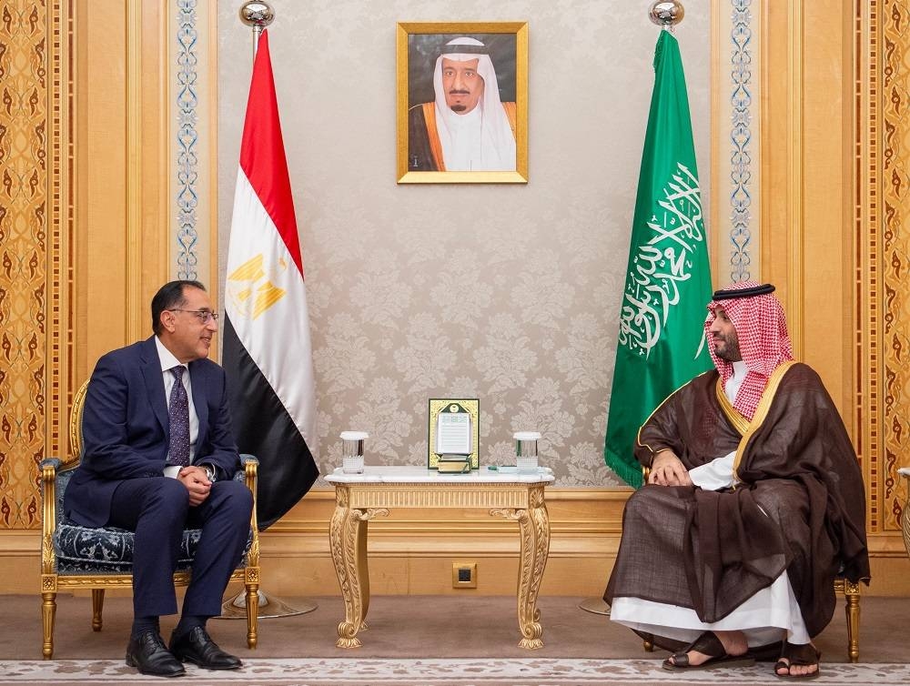 ولي العهد يستعرض العلاقات والتعاون المشترك مع رئيس وزراء مصر