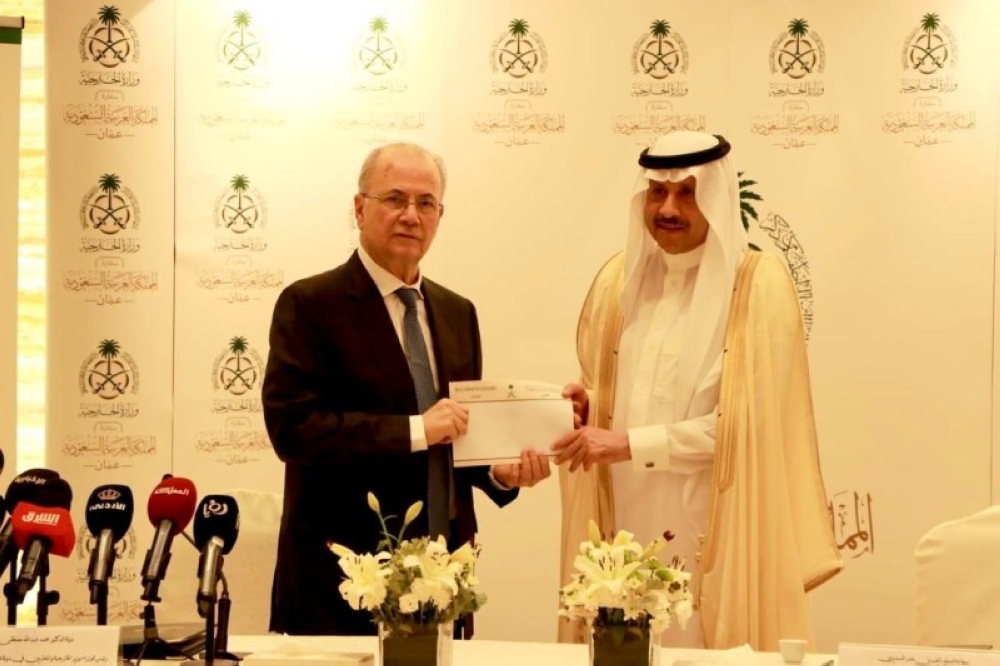 السفير السعودي بالأردن يسلم رئيس وزراء فلسطين الدعم المالي المقدم من المملكة