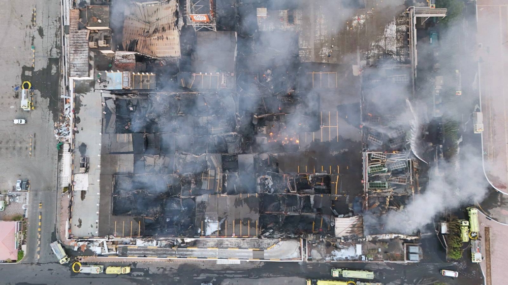 الدفاع المدني يستكمل البحث عن أسباب حريق سوق جدة الدولي