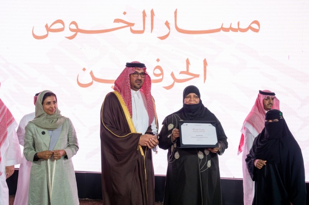 واطّلع خلال جولته في المعسكر الحرفي الذي استمر على مدار 28 يوماً، على مجموعة من المنتجات العمليّة والفنيّة والشخصيّة لأكثر من 50 مُشاركاً من مختلف مناطق المملكة تحت إشراف خبراء ومدربيّ المعهد.