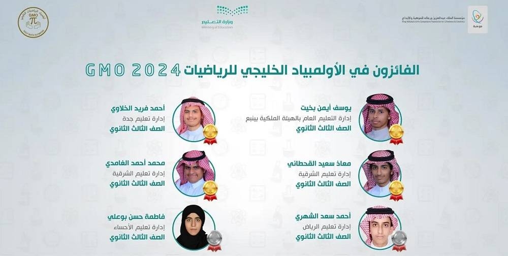 وحقق المنتخب السعودي للرياضيات 6 ميداليات، إذ فاز الطلبة: يوسف أيمن بخيت، من تعليم الهيئة الملكية بينبع، وأحمد فريد الخلاوي، من تعليم جدة، ومعاذ سعيد القحطاني، من تعليم الشرقية، ومحمد أحمد الغامدي، من تعليم الشرقية، بـ4 ميداليات ذهبية، بينما حاز الطالب أحمد سعد الشهري، من تعليم الرياض، والطالبة فاطمة حسن بوعلي، من تعليم الأحساء، على ميداليتين فضيتين.