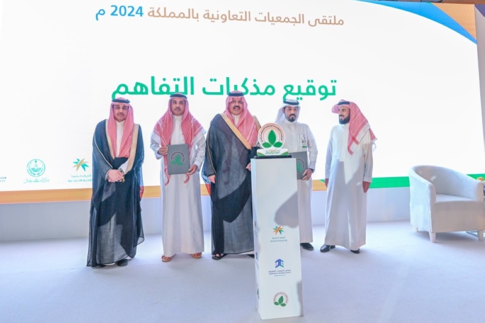 إثر ذلك شهد الأمير عبدالعزيز بن سعد حفل توقيع مذكرات تفاهم لعدد من الجمعيات والجهات الحكومية والخاصة، ثم كرم، الدكتور حمد البدر، والمهندس سليمان الجطيلي، إلى جانب المشاركين والمتحدثين. ونوه أمير حائل بدعم القيادة للاقتصاد المحلي، وتعزيز التنمية المستدامة، مشيرًا إلى أهمية دور الجمعيات في تحقيق ذلك وخروج الملتقى بتوصيات تثري الحراك الاقتصادي في مناطق المملكة، معربًا عن ترحيبه بالجميع وشكره للقائمين على نجاح الملتقى.