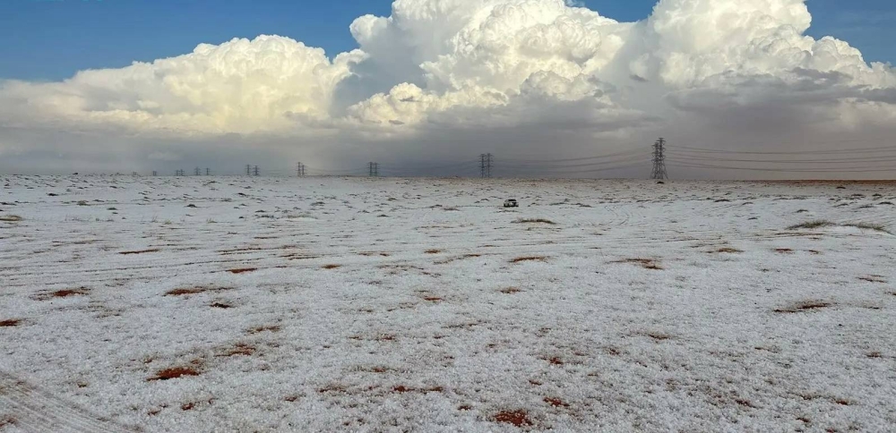 اكتست منطقة الجوف، منذ البارحة وصباح اليوم، باللون الأبيض إثر تساقط زخات البرد مع هطول أمطار غزيرة على شمال مدينة سكاكا ومحافظة دومة الجندل.