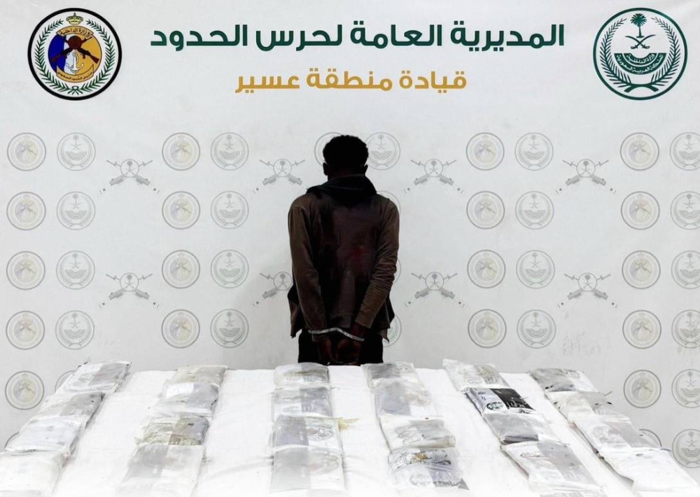 قبضت الدوريات البرية لحرس الحدود في قطاع ظهران الجنوب بمنطقة عسير على مخالف لنظام أمن الحدود من الجنسية الإثيوبية، لتهريبه 32 كيلوغراماً من مادة الحشيش المخدر، وجرى استكمال الإجراءات النظامية الأولية بحقه، وتسليمه والمضبوطات لجهة الاختصاص.