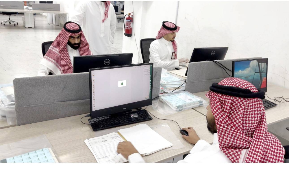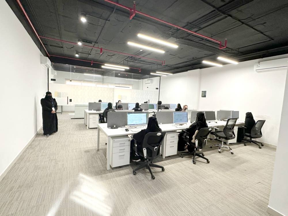 أقسام يعمل فيها شباب وشابات سعوديون بمهارة عالية يتعاملون مع أجهزة حاسوب دقيقة وبرامج حديثة، وفي هدوء تام.