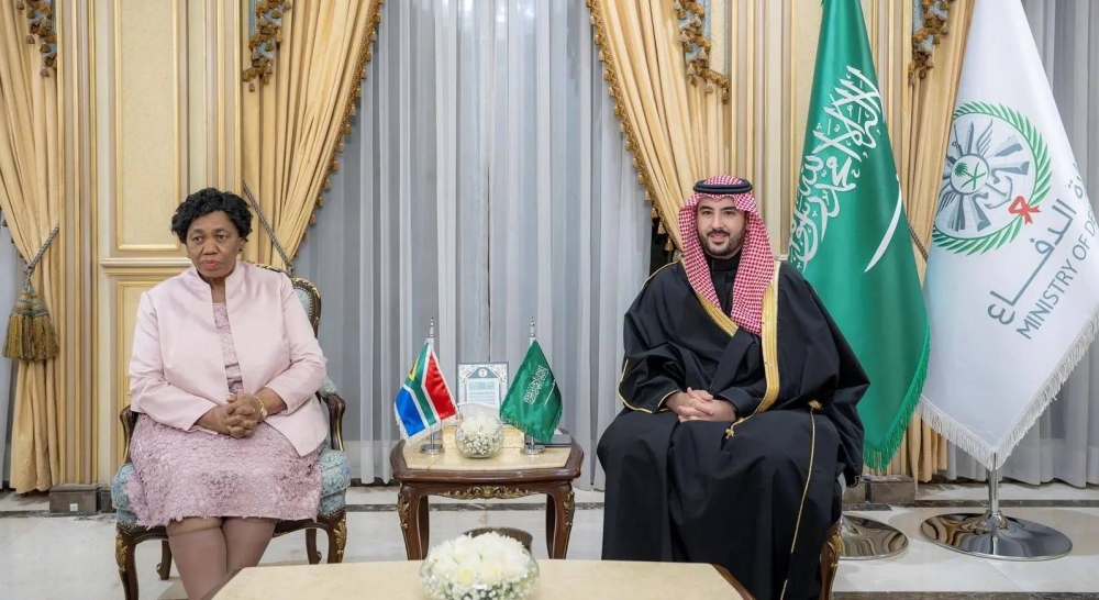 استقبل وزير الدفاع الأمير خالد بن سلمان بن عبدالعزيز، في مكتبه بالرياض اليوم، وزيرة الدفاع والمحاربين القدامى بجمهورية جنوب أفريقيا أنجي موتشيكجا.