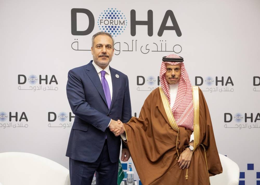 التقى وزير الخارجية الأمير فيصل بن فرحان بن عبدالله اليوم وزير خارجية الجمهورية التركية هاكان فيدان، على هامش منتدى الدوحة 2024 في نسخته الـ(22).