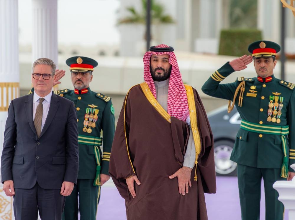 واستقبل ولي العهد في الديوان الملكي بقصر اليمامة في الرياض اليوم (الإثنين)، رئيس الوزراء البريطاني وأجريت لدولته مراسم الاستقبال الرسمية.