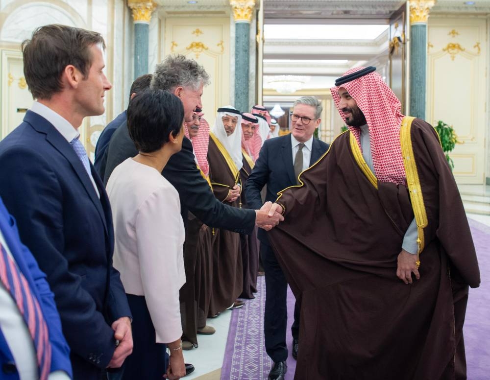 حضر اللقاء وزير الطاقة الأمير عبدالعزيز بن سلمان بن عبدالعزيز، وسفير خادم الحرمين الشريفين لدى المملكة المتحدة الأمير خالد بن بندر بن سلطان بن عبدالعزيز، ووزير الدولة عضو مجلس الوزراء الأمير تركي بن محمد بن فهد بن عبدالعزيز، ونائب أمير منطقة الرياض الأمير محمد بن عبدالرحمن بن عبدالعزيز، ووزير الرياضة الأمير عبدالعزيز بن تركي بن فيصل بن عبدالعزيز، ووزير الحرس الوطني الأمير عبدالله بن بندر بن عبدالعزيز، ووزير الدفاع الأمير خالد بن سلمان بن عبدالعزيز، ووزير الخارجية الأمير فيصل بن فرحان بن عبدالله، ووزير الدولة عضو مجلس الوزراء مستشار الأمن الوطني الدكتور مساعد بن محمد العيبان، ووزير التجارة الدكتور ماجد بن عبدالله القصبي (الوزير المرافق)، ووزير الاستثمار المهندس خالد بن عبدالعزيز الفالح، ووزير المالية محمد بن عبدالله الجدعان.